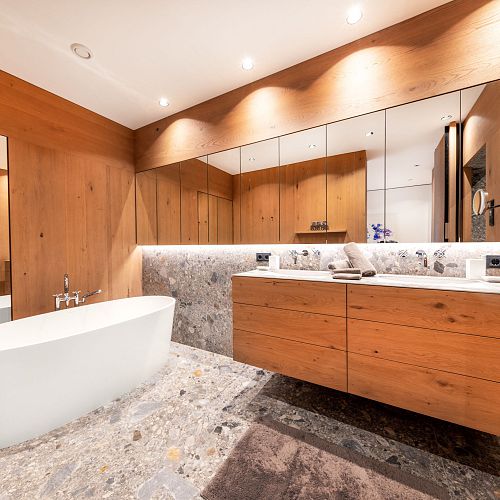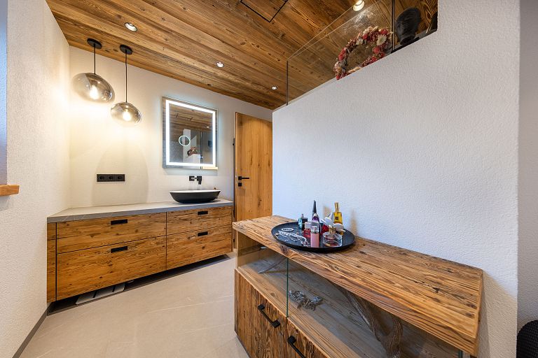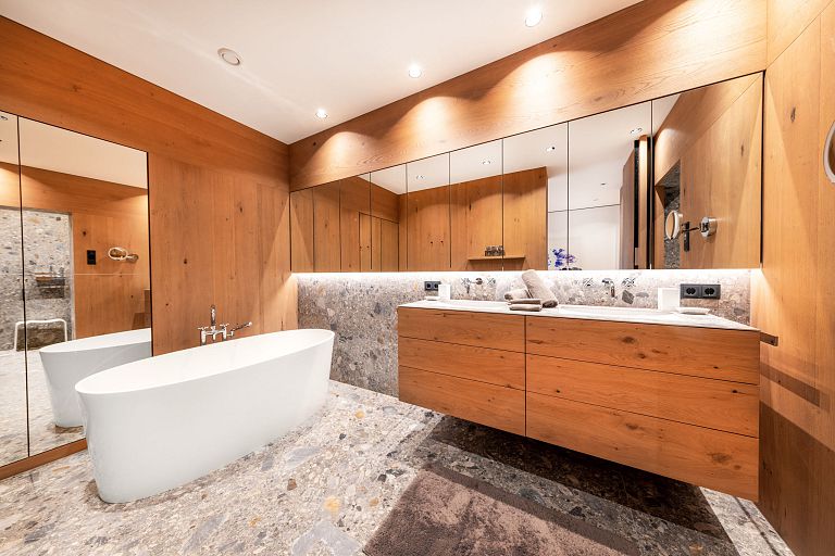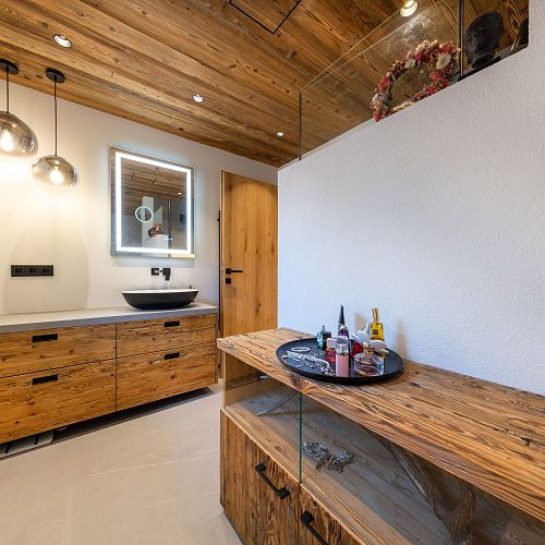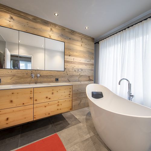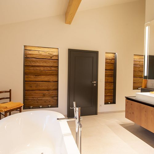 Bei diesem Projekt durften wir den Großteil der Einrichtung in feinstem Altholz ausführen und zwar die komplette Küche , die Sideboards im Wohnbereich, einige Wandvertäfelungen, das schöne Schlafzimmer samt aller Schrankverbauten, die exklusiven Badewannenverbau und auch die Waschtischunterbauten.