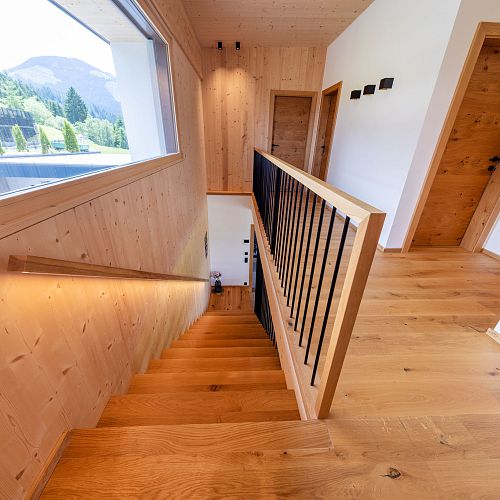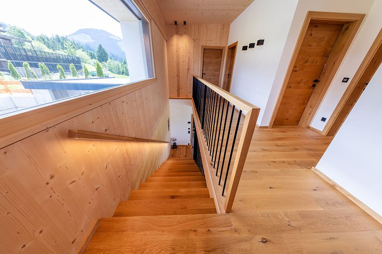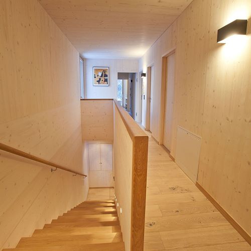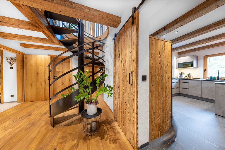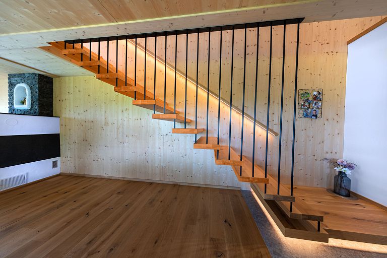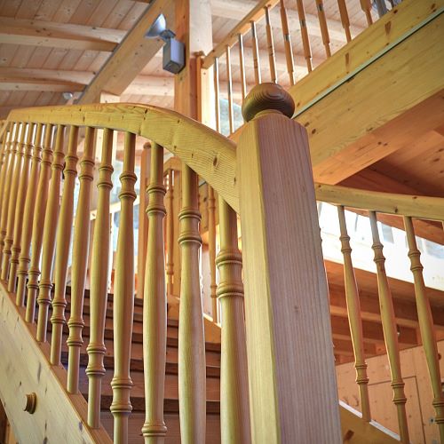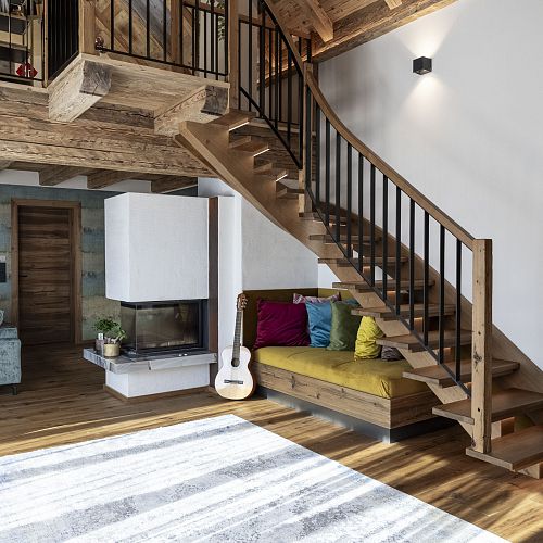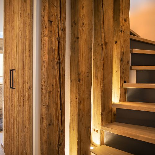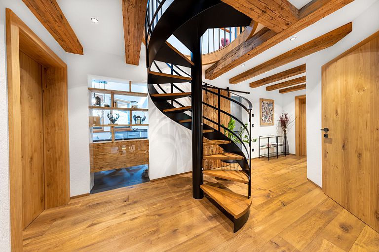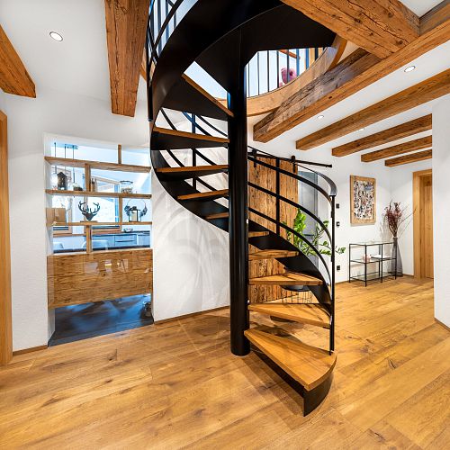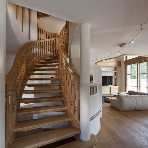 Von traditionellen, rustikalen und heimeligen Baustoffen bis zu modernen und klaren Stilmitteln: Die Möglichkeiten sind grenzenlos. Unser Lieblingsthema Holz spielt in unseren Arbeiten natürlich die Hauptrolle, ob bei Treppen, Decken oder Böden. Zusammen mit ergänzenden Stoffen, Farben und entsprechender Möblierung komponieren wir kleine Symphonien des Wohnens. Sehen Sie deshalb genau hin! Schließlich sollte man gerade beim Hausbau nicht nur auf die Äußerlichkeiten achten. Wohnen werden Sie letztlich auch innen drin.