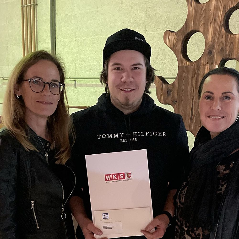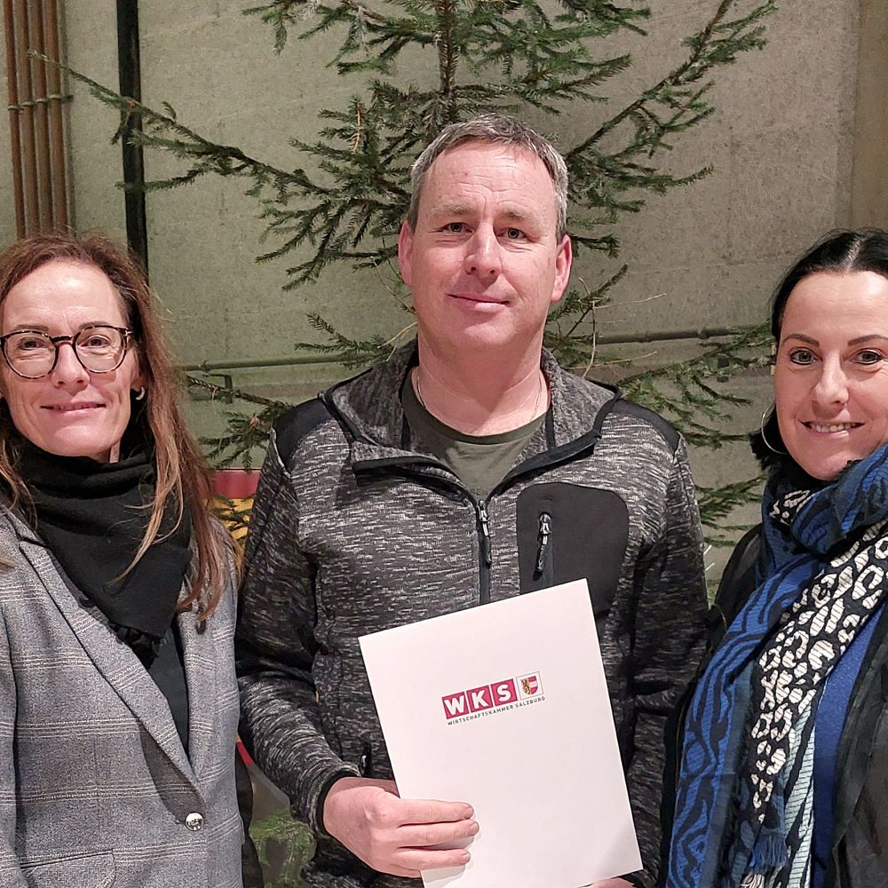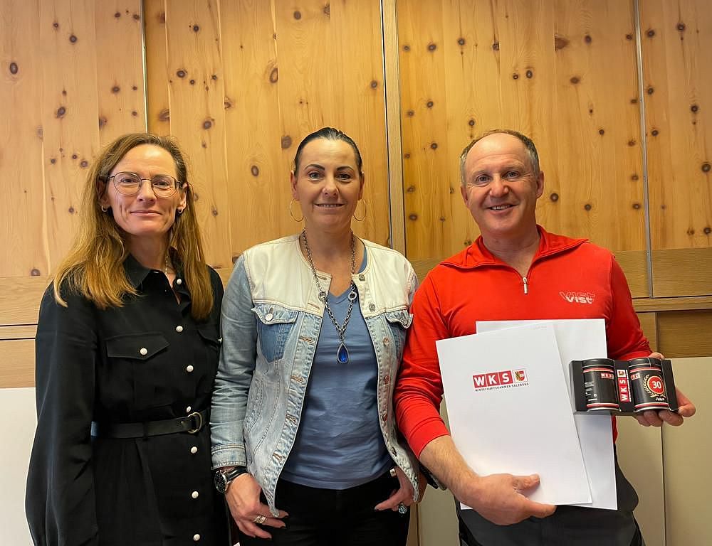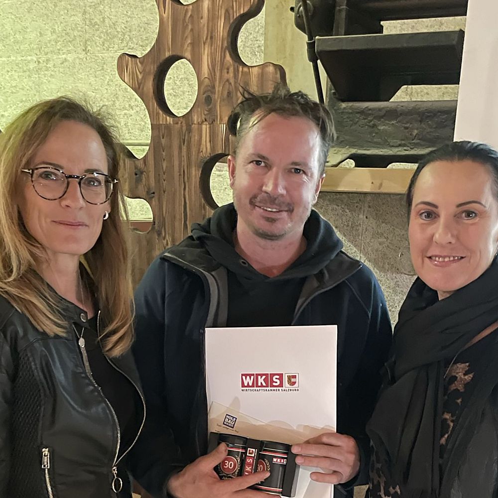 Hinten v.l. : Fritz Egger (Landesinnungsmeister), Stefan Rammler (30 Jahre), Peter Angerer (40 Jahre), Andreas LEO (30 Jahre), Gundi & Birgit Maier, Atzmüller Hermann (Bundesinnungsmeister), Hilde Maier, Georg Schernthaner (30 Jahre)