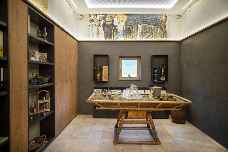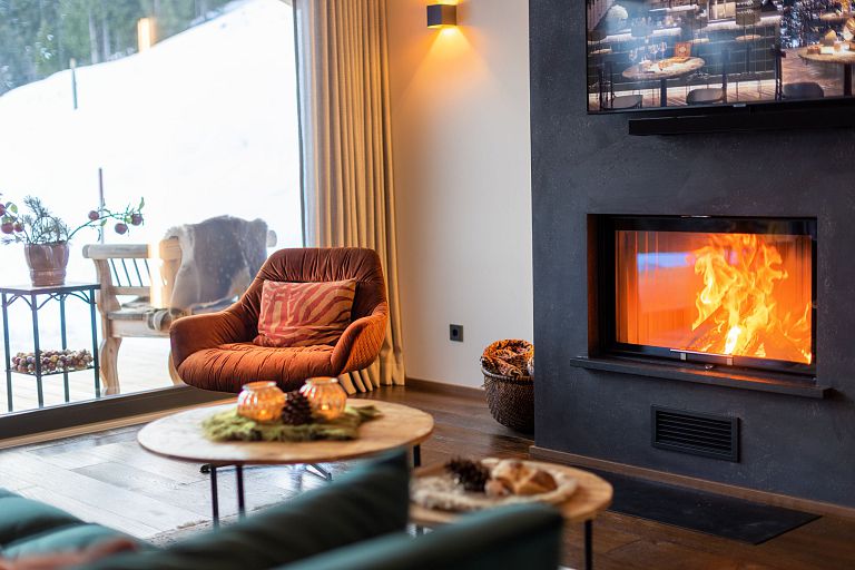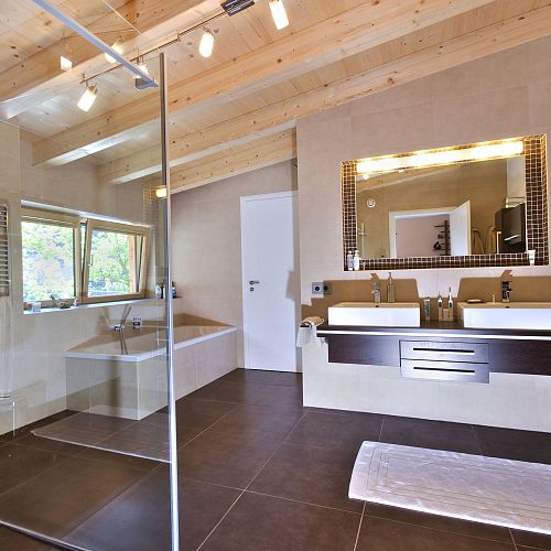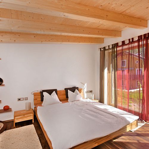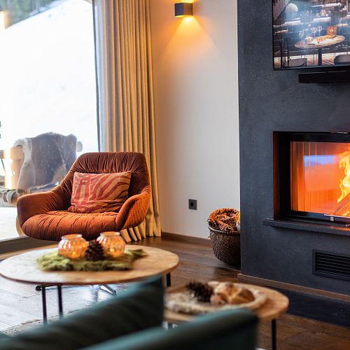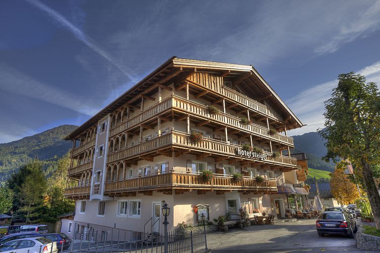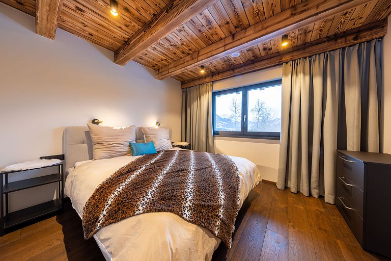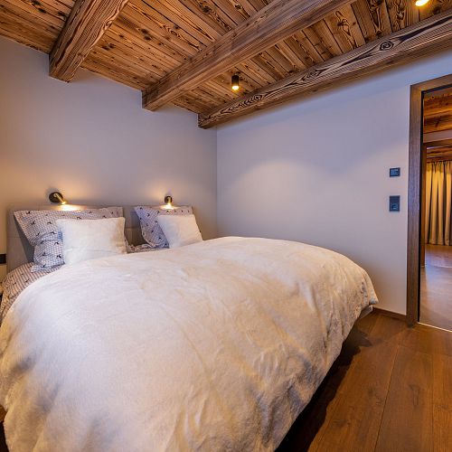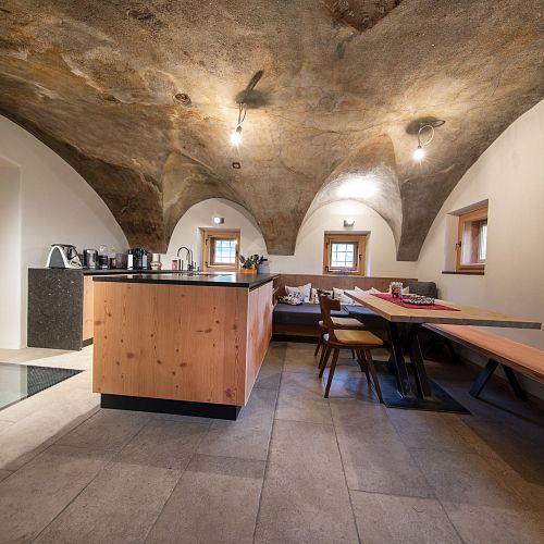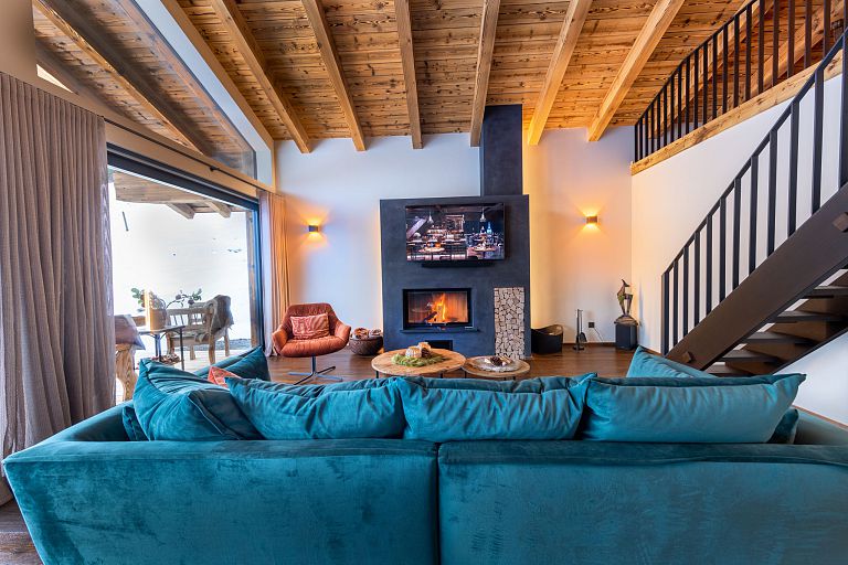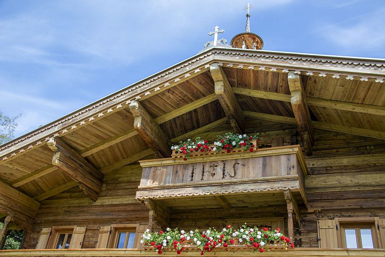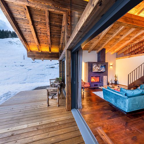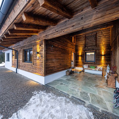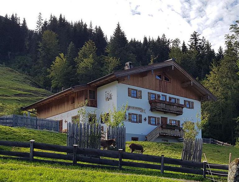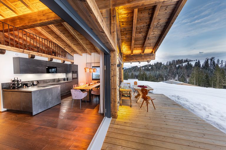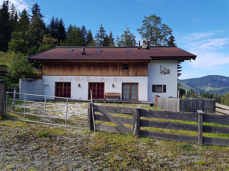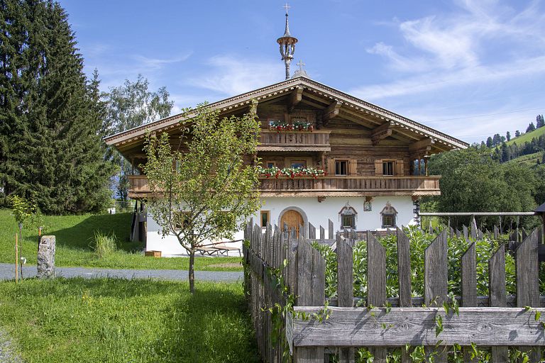 Die Fassade, die Balkone und die Windläden sind in Altholz und Fichte kombiniert mit traditionellen Tiroler Schweifungen und Verzierungen. Die Fenster und Balkontüren wurden in geöltem Lärchenholz ausgeführt. Die alten Holzböden wurden abgetragen , aufbereitet und als Sichtschalung bei den neuen Holzdecken wiederverwendet.