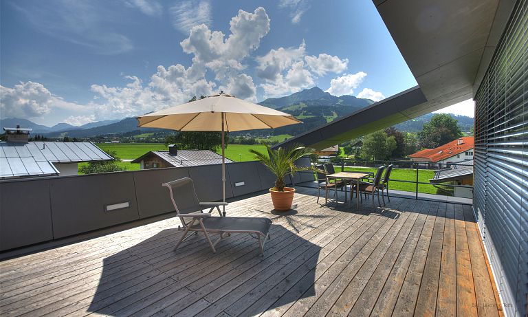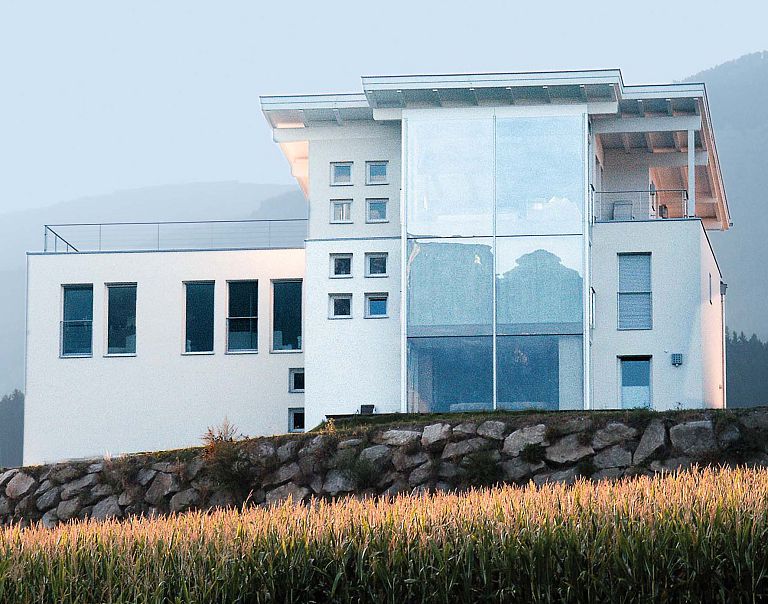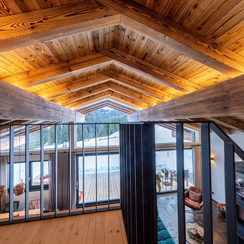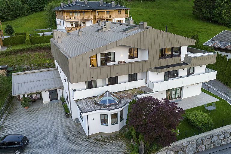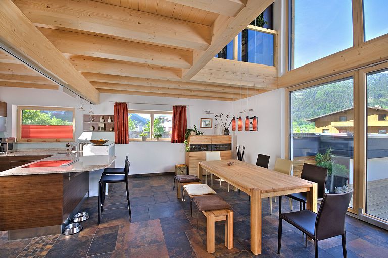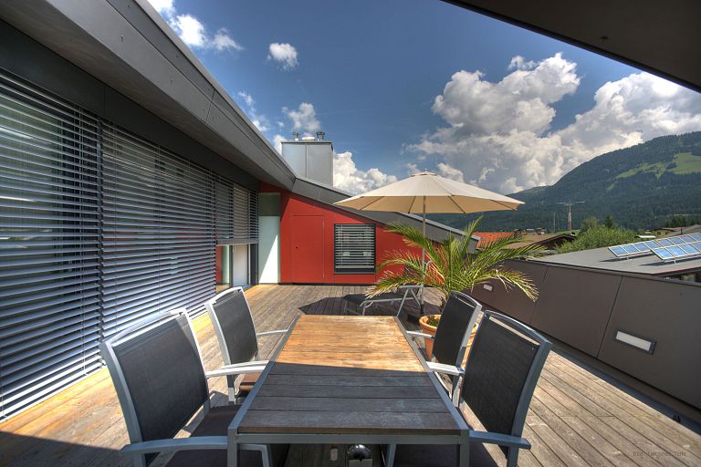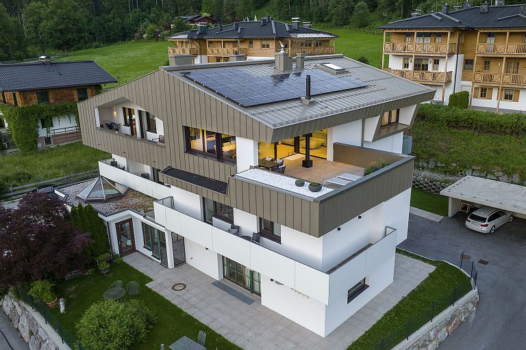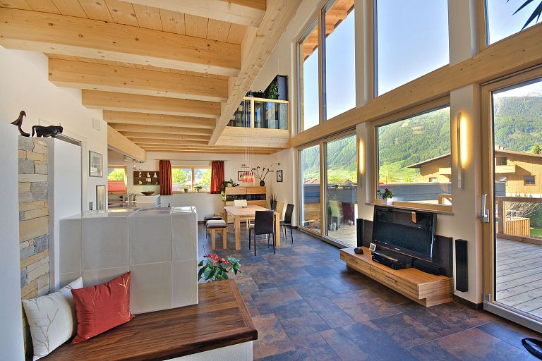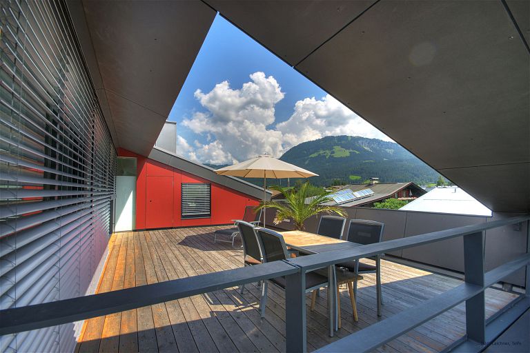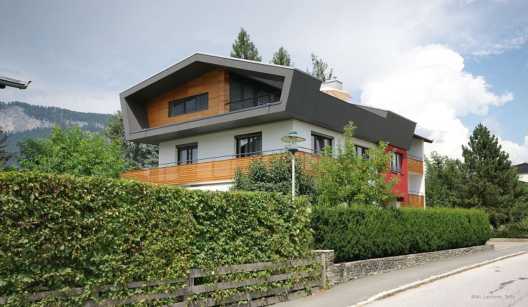 Beim Umbau des Mehrfamilienwohnhauses in Kaprun wurde vom Bestandsbau das oberste Geschoß abgebrochen. Danach erfolgte die Aufstockung um des obersten Geschoß in Form eines „Penthouse“ in Massivholz – bzw. Holzriegelbauweise.