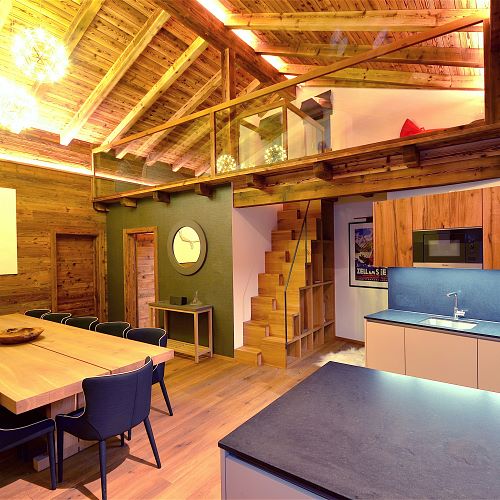 Auch die Innenausstattung will perfekt aufeinander abgestimmt sein. Darum beschäftigen wir im wahrsten Sinne des Wortes ausschließlich „Insider“: Zum einen Zimmerer-Profis, deren glänzende Handwerkskunst auch bei Ihren Treppen, Decken oder Böden aufblitzen wird. Zum anderen sind in unserer Tischlerei 60 Meisterhände am Werk, die die Ästhetik und Natürlichkeit des Werkstoffs Holz genau einzusetzen wissen. Ebenso wie andere Materialien, die sich positiv auf Ihr Wohlbefinden auswirken: Samtweiche Loden und Leinenstoffe, die Ihren Körper umschmeicheln, oder auch heimischer Naturstein – beispielsweise für die hygienische wie elegante Arbeitsplatte Ihrer Maßküche.